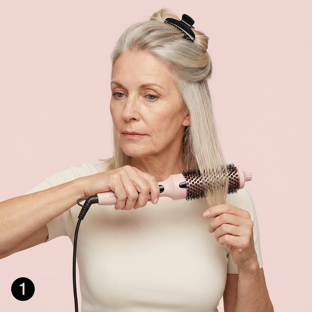 - Repeat — Work through sections until you've styled your whole head. Takes about 10 minutes for most hair lengths.